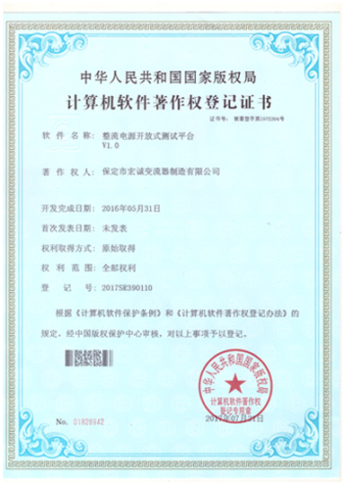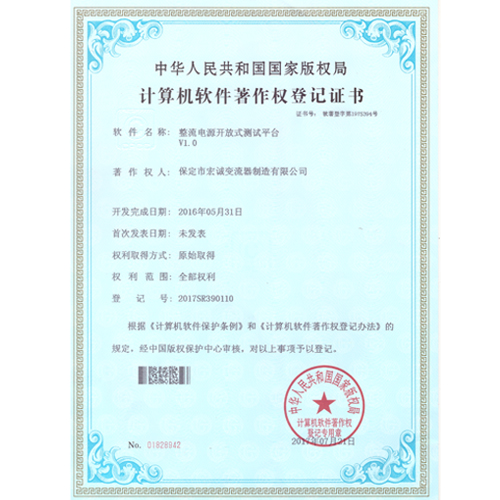 計算機軟件注冊權登記證書——整流電源開放式測試平臺V1.0