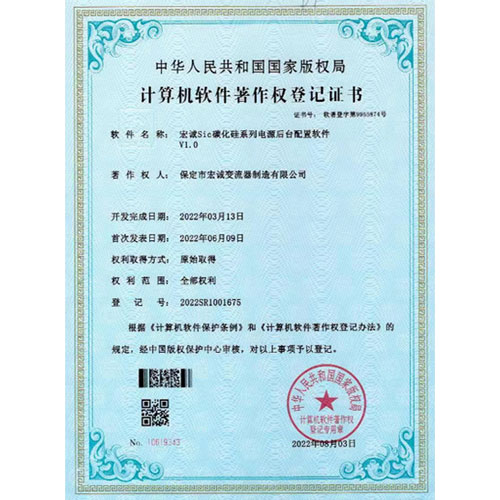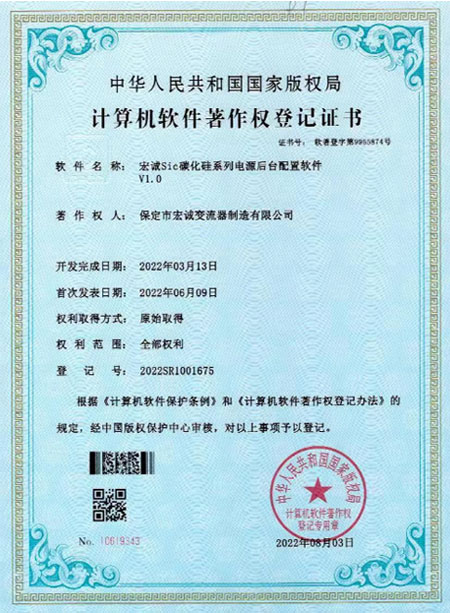 計算機軟件著作權登記證書--Sic碳化硅系列電源后臺配置軟件V1.0