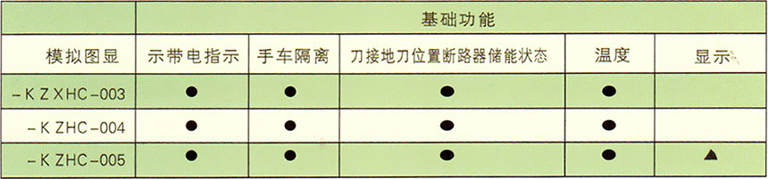 注:表示固有功能 ▲ 表示附加功能,附加功能可多重選擇;“空白”表示無此功能。